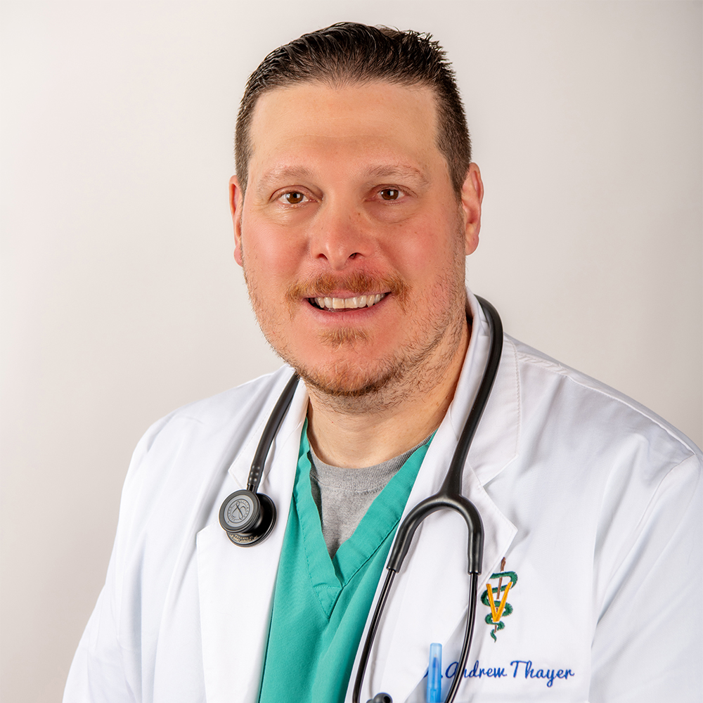 "Dr. Thayer is awesome! Great bedside manner, very informative and communicative, and does not ever offer/suggest unnecessary/invasive procedures. Our dogs love him. His staff is also great - we always feel welcome!"